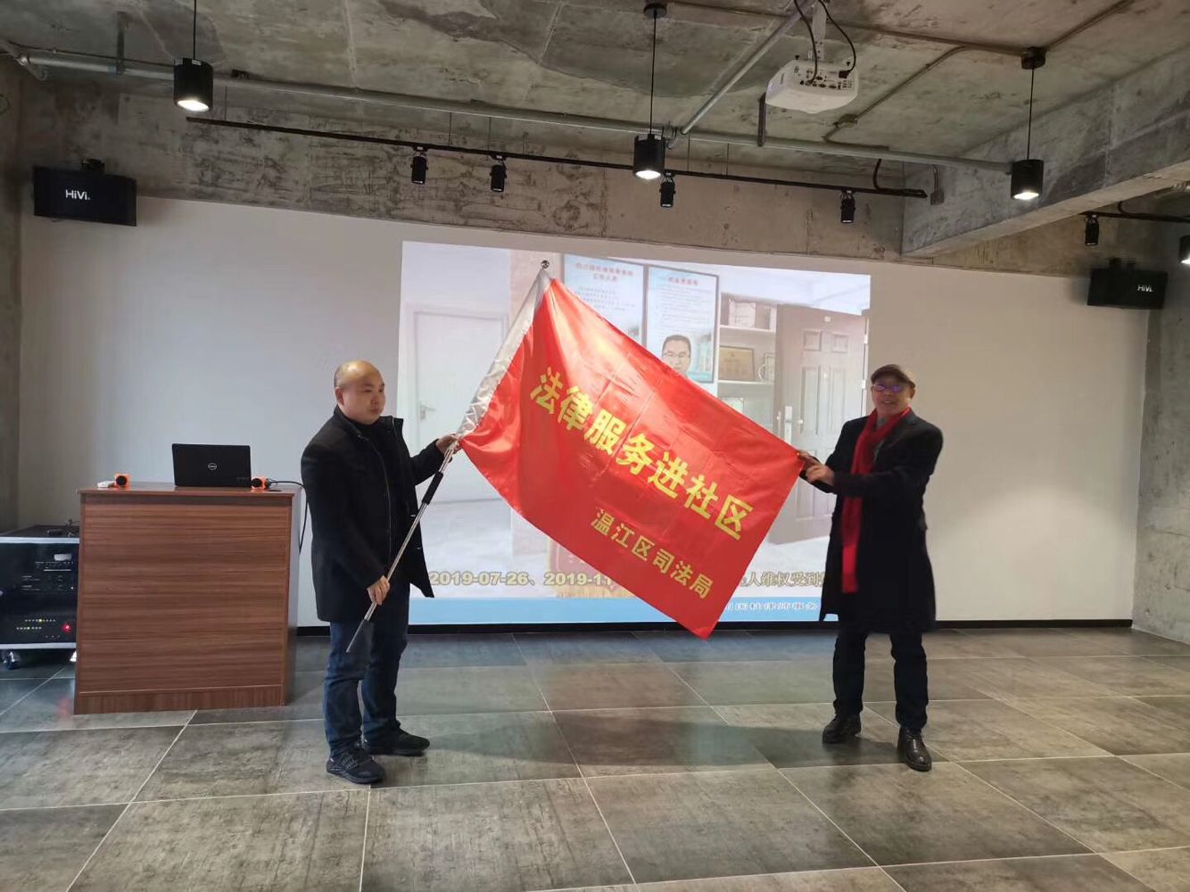 仪式最后一项议程是温江区法律援助中心主任李向成向四川国柱律师事务所主任刘丹国律师授予“法律服务进社区”的旗帜。仪式结束后,国柱所两名律师立即前往温江区花乡民居小区,展开本次活动的第一场免费法律咨询服务,获得小区居民热烈欢迎。四川国柱律师事务所必将秉持法治信仰,弘扬法治精神,引导参与活动的小区群众依法理性表达诉求、依法维护自身权益。